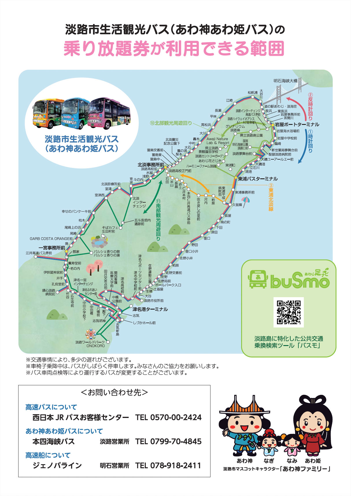 新神戸・三ノ宮・舞子方面からの高速バス、または明石からの淡路ジェノバライン(フェリー)と、「淡路市生活観光バス」がセットになったお得なチケットをぜひご確認ください。