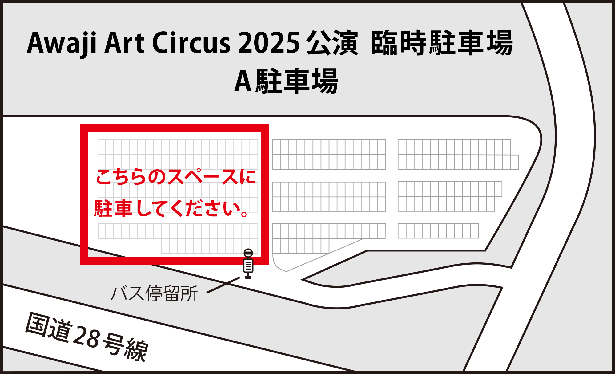 なお、開演時間が近づく13:30 以降はバスが大変混み合います。13 時ごろまでにA駐車場へお越しいただけますよう、ご協力をお願いいたします。