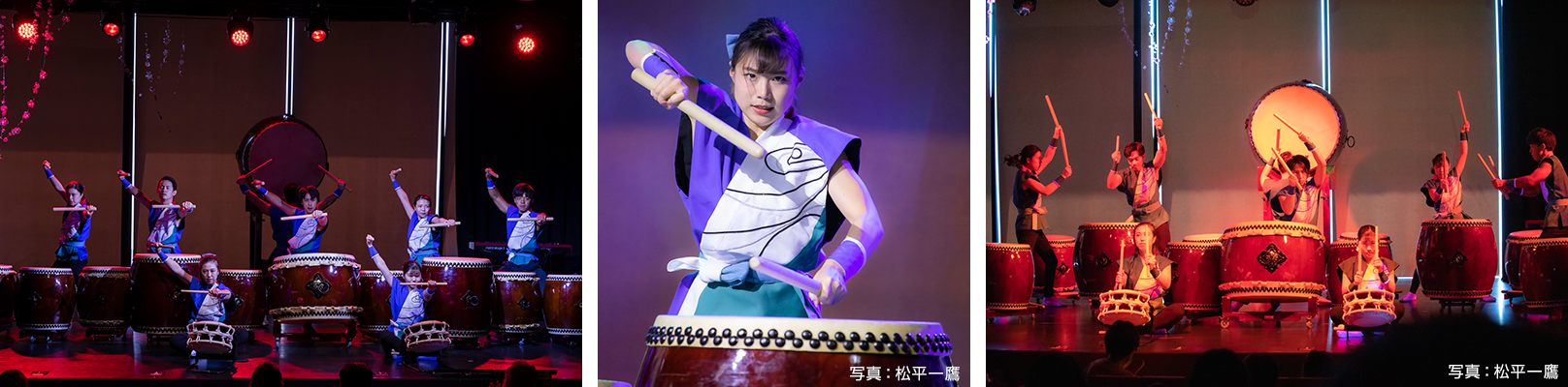 神戸市出身の太鼓奏者、上田秀一郎氏の指導の元、淡路島のみならず、関西・関東方面にも活動のエリアを展開している。