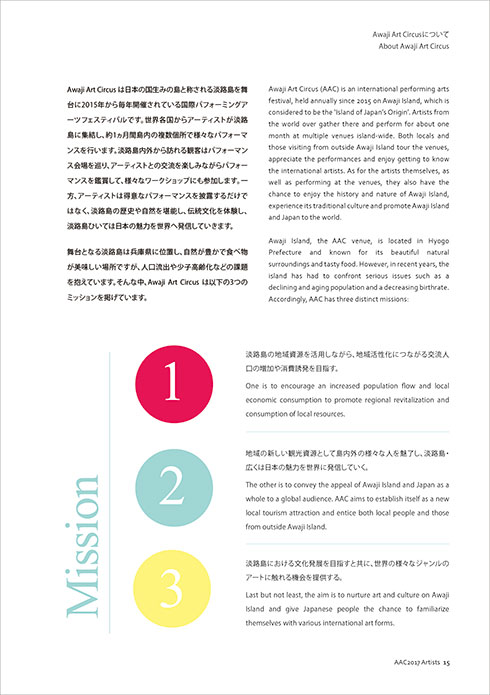2017年のアートサーカスの活動報告がメインの内容ですが、2015年と2016年の情報も掲載されており、アートサーカスのこれまでの活動の貴重な記録集です。