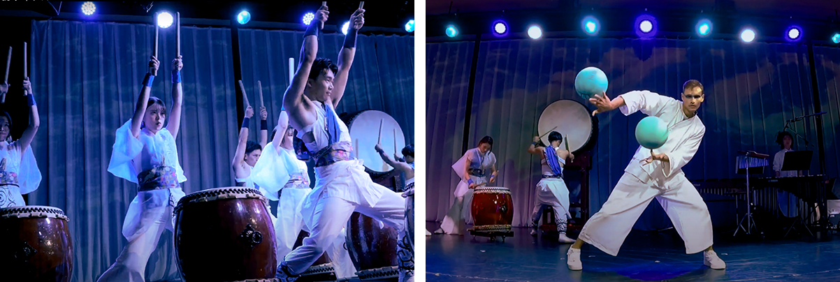 一つの演目の中では、淡路島の近くによく見られる飛び跳ねる魚をパフォーマンスで表現しています。